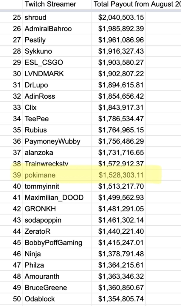 Earnings Of Top Streamers From Twitch From August 2019 To Today Figures Do Not Include Sponsored Content Individual Donations Revenue From Other Platforms Etc Oc R Dataisbeautiful